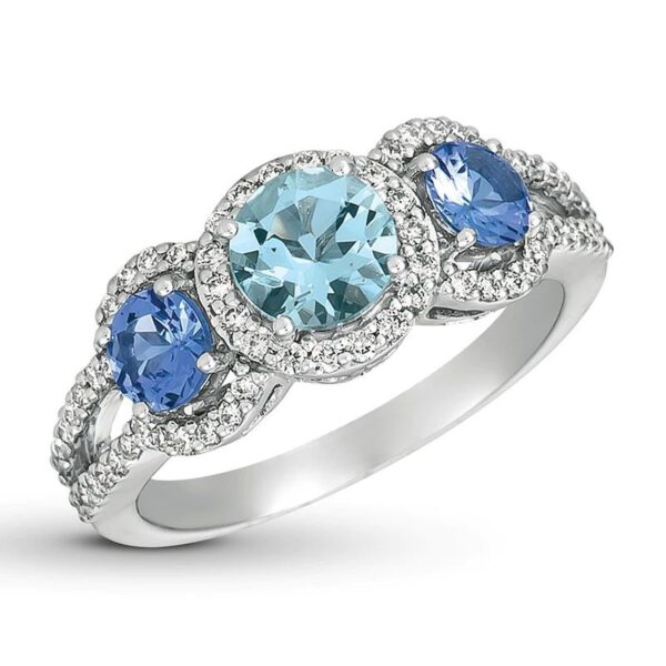 Aquamarine/London Blue Topaz/White Sapphire Ring Sterling Silver