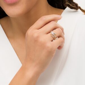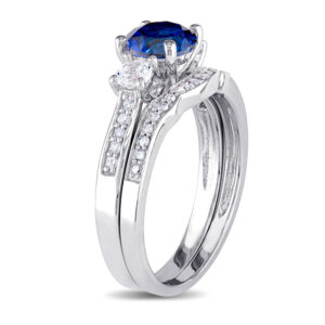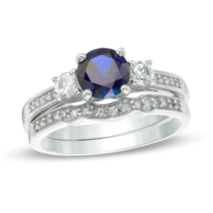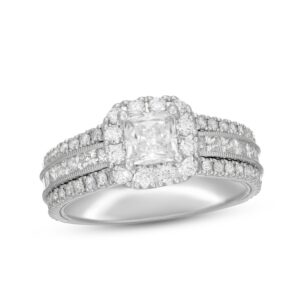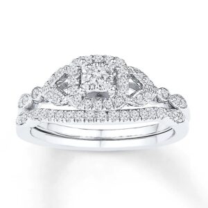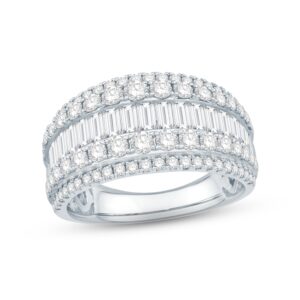 With sparkling round diamonds totaling 1/2 carat in weight, this wedding band is a wonderful way to symbolize your commitment. The 14K white gold ring is designed to accompany her matching engagement ring (sold separately).